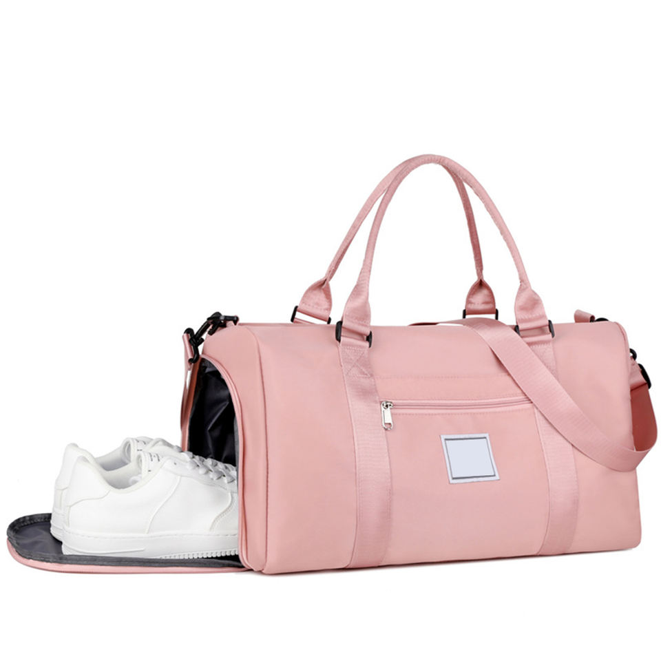 Bolso de mano de nailon resistente al agua de gran capacidad para mujer, bolso de gimnasio con logotipo personalizado, compartimento para zapatos de lona para deportes de noche