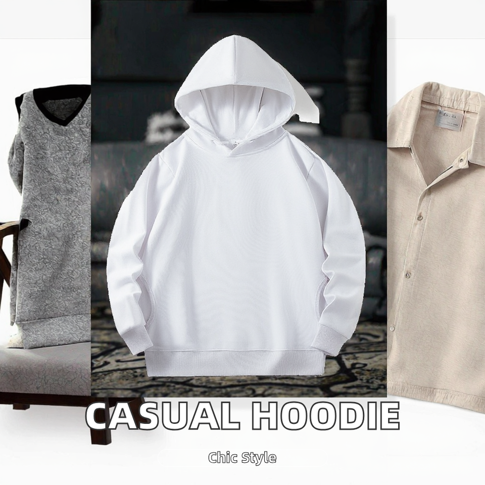 Ropa de grupo de trabajo informal de talla grande para mujer, primavera Otoño, círculo para adultos, inserción fina, bolsa con capucha, técnica tejida frontal teñida lisa