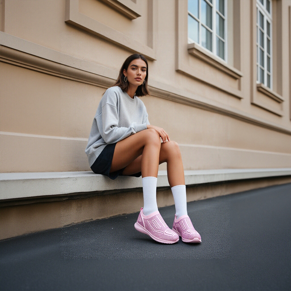 Zapatillas Deportivas Ligeras e Impermeables para Mujer, con Pedrería, Elásticas, Tejidas, Brillantes, Casuales, para Fiesta y Caminar