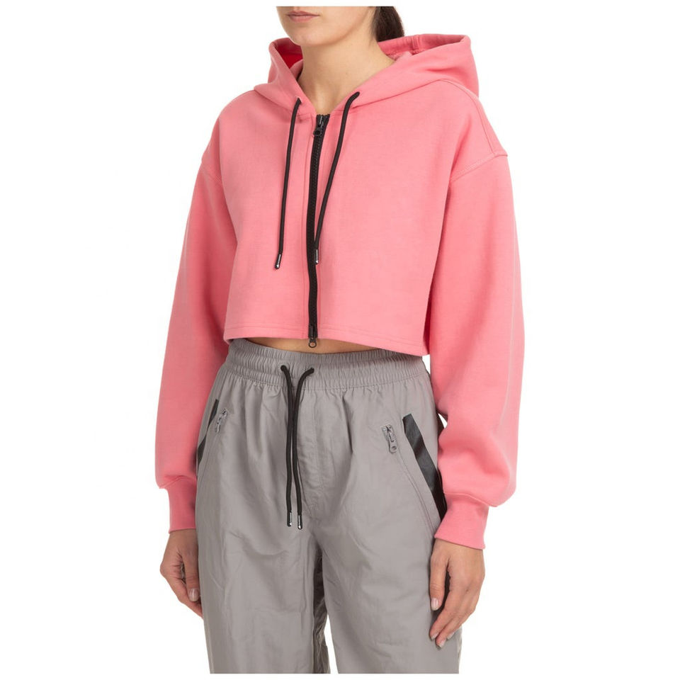 Chaqueta deportiva ligera de gran tamaño con capucha y cremallera para mujer, ropa de calle de invierno, logotipo estampado frontal de moda informal de punto