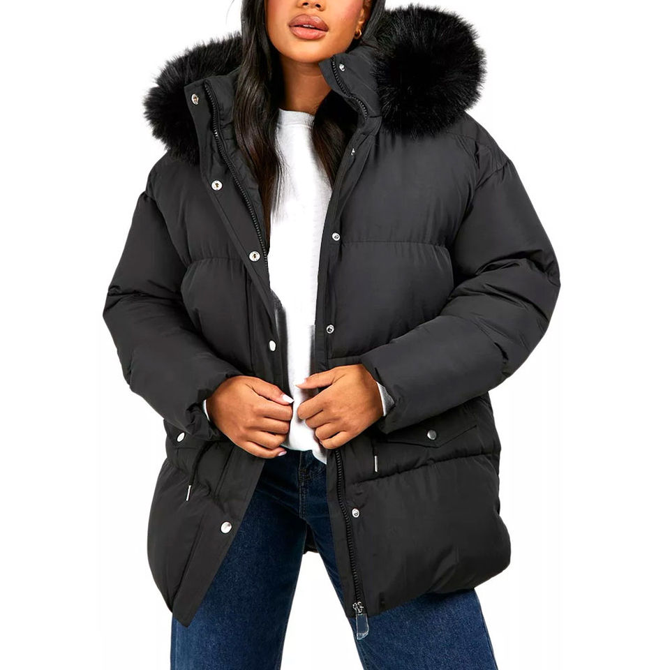 Parka Larga Impermeable con Capucha para Mujer, Cierre de Cremallera, Abrigo de Invierno, Comodidad al Aire Libre, Hecha de Tela de Nailon Resistente al Viento y al Agua