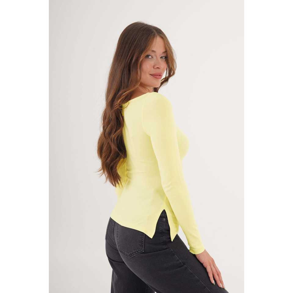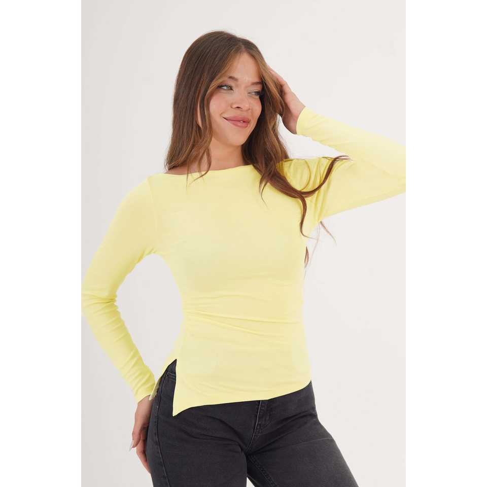 Blusa Amarilla de Manga Larga para Mujer con Abertura Lateral, Camisa Elegante a la Moda