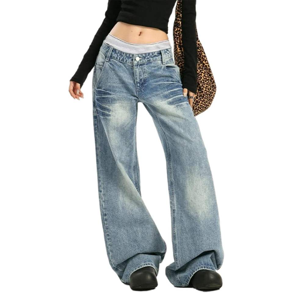 Pantalones vaqueros holgados de tiro bajo para mujer, pantalones de mezclilla de pierna ancha Y2K Boyfriend, pantalones Vintage lavados, transpirables, cintura holgada, ropa de calle, estilo mamá
