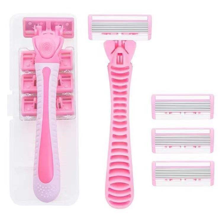 Women's Manual Razor Stainless Steel Triple Blade For Underarm And Legs Hair Removal Tool Plastic Handle Six Layer Shaving Blade