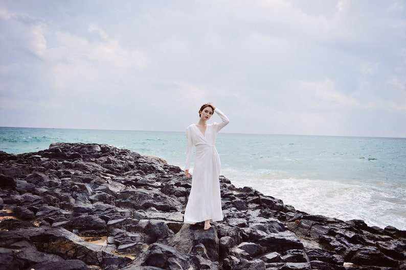 Mini vestido de mujer con manga 3/4 patrón floral cintura natural algodón orgánico y tela de lino Estilo Vintage vestido blanco