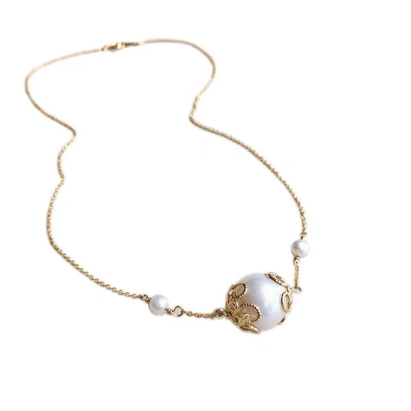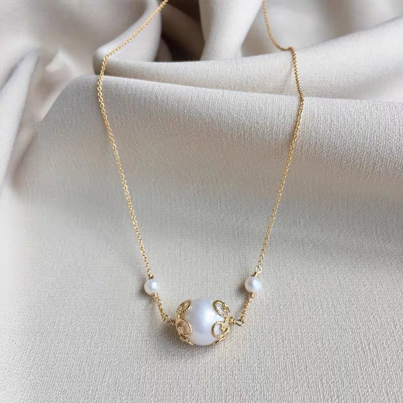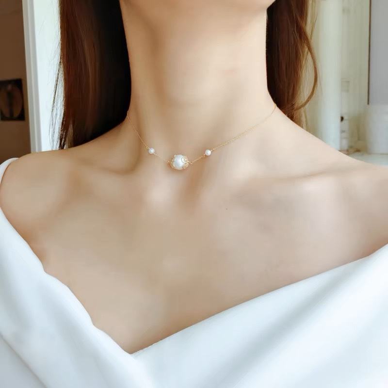 Collar con Colgante de Perlas de Agua Dulce Barrocas Naturales para Mujer, Cadena de Clavícula con Baño de Oro de 14K, Estilo Coreano, Nuevo Lanzamiento