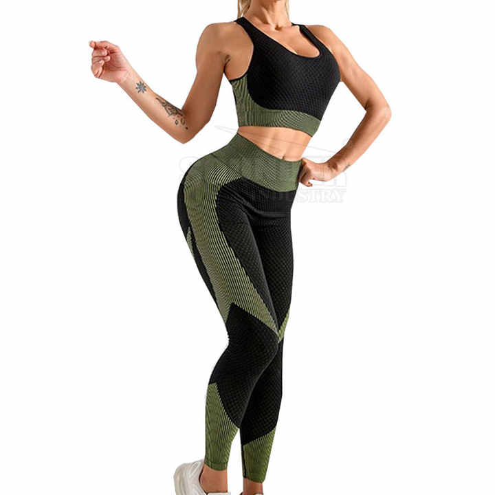 Nuevo estilo de mujer, ropa deportiva personalizable para gimnasio, conjuntos de Yoga de patrón sólido con cintura elástica, conjuntos de Yoga de gimnasio personalizados de 2 piezas a la venta