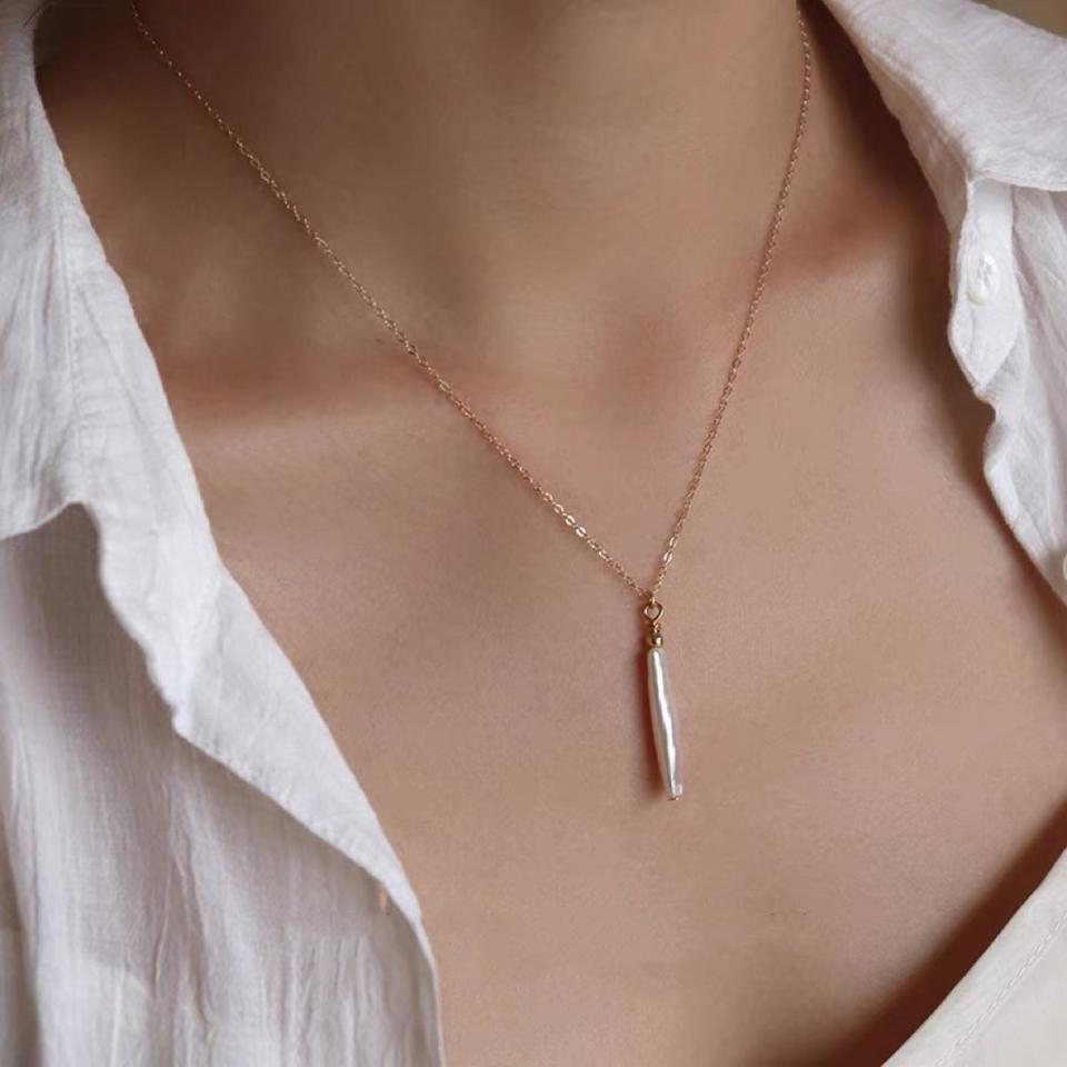 Collar con Colgante de Barra de Plata Minimalista de un Solo Carácter para Mujer, Collar Fino con Perla Natural Simple de Agua Dulce