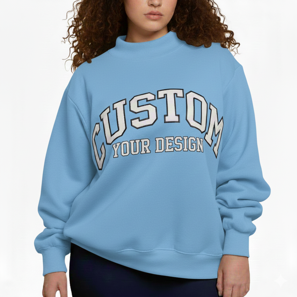 Sudadera Extra Grande de Forro Polar para Mujer con Cuello Alto Simulado, Puños Bordados y Logotipo Personalizado en la Parte Delantera, Estampado Invernal para Uso Diario