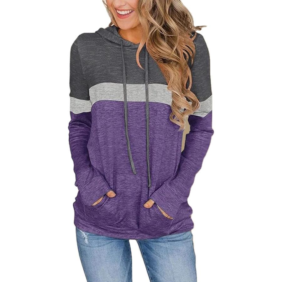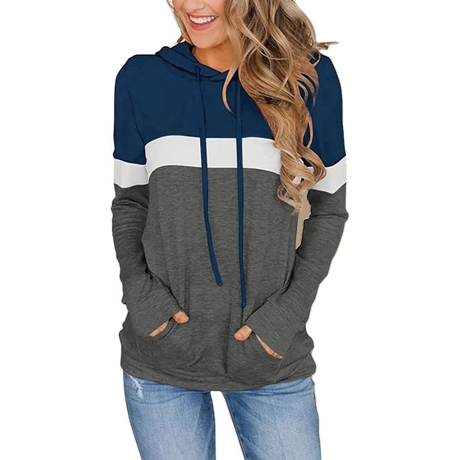 Sudadera con Capucha de Talla Grande para Mujer, Bloques de Color, 95% Poliéster 5% Elastano, Patrón Geométrico, Ligera Elasticidad, Tejido de Punto