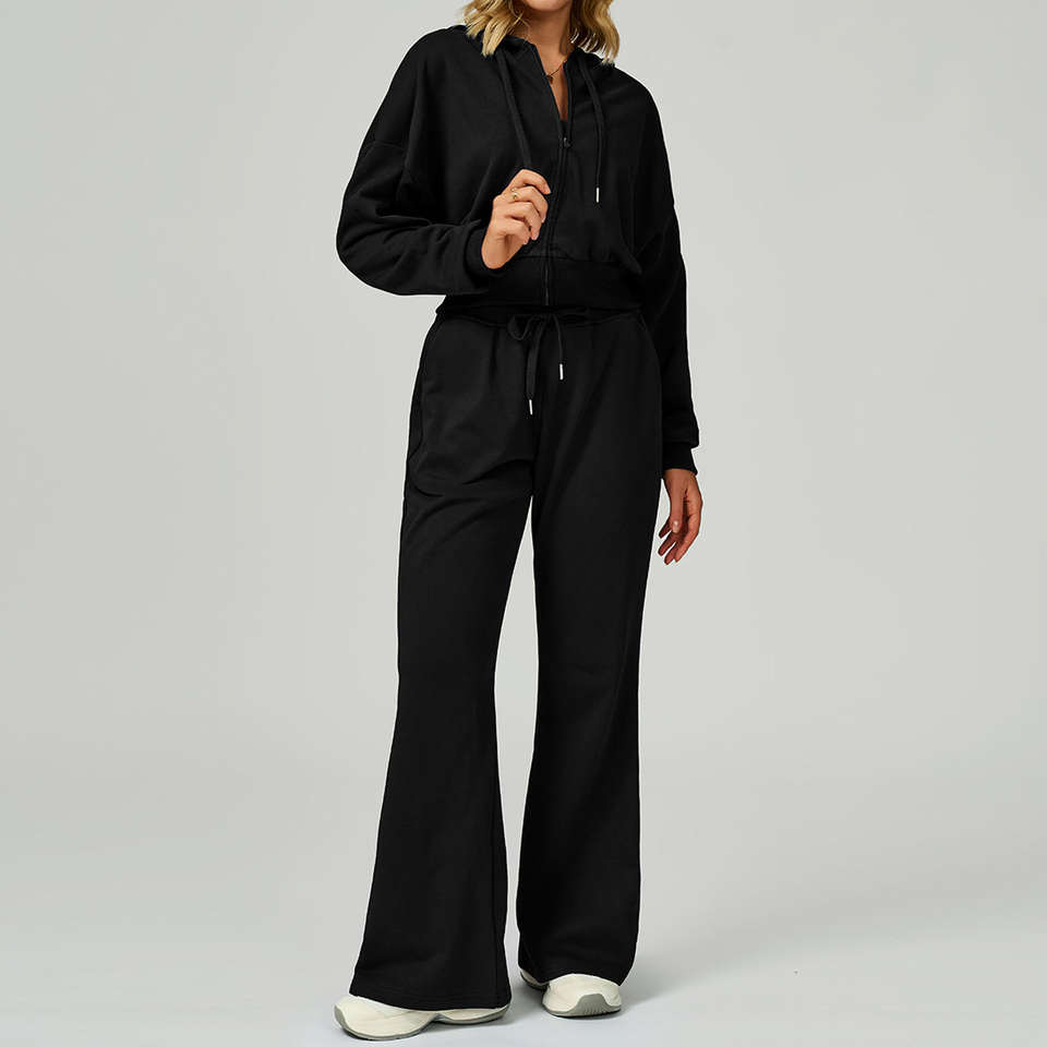 Conjunto Deportivo de Invierno para Mujer, Talla Grande, Color Sólido, 100% Algodón, Sudadera con Capucha y Pantalones Jogger de Dos Piezas