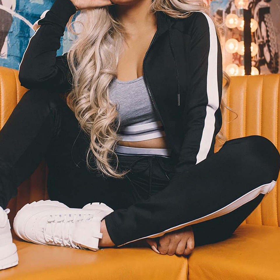 Conjunto Deportivo de Invierno para Mujer, Talla Grande, Color Sólido, 100% Algodón, Sudadera con Capucha y Pantalones Jogger de Dos Piezas