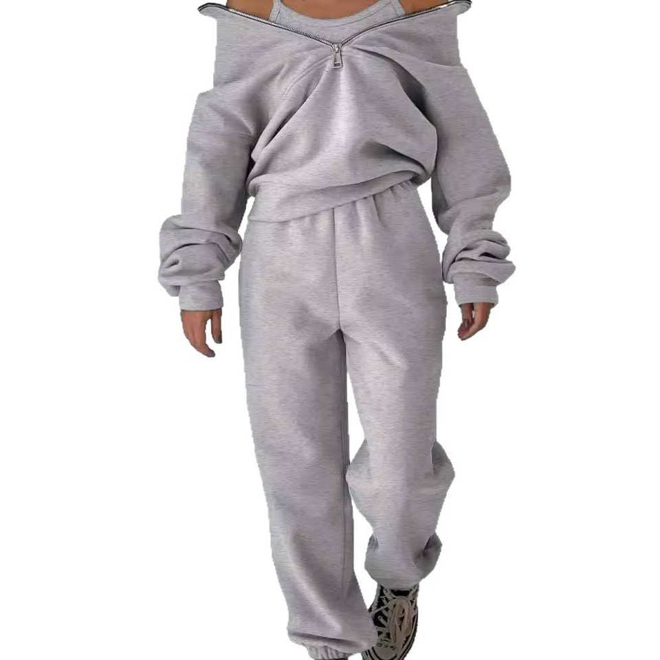 Conjunto Deportivo de Invierno para Mujer, Talla Grande, Color Sólido, 100% Algodón, Sudadera con Capucha y Pantalones Jogger de Dos Piezas
