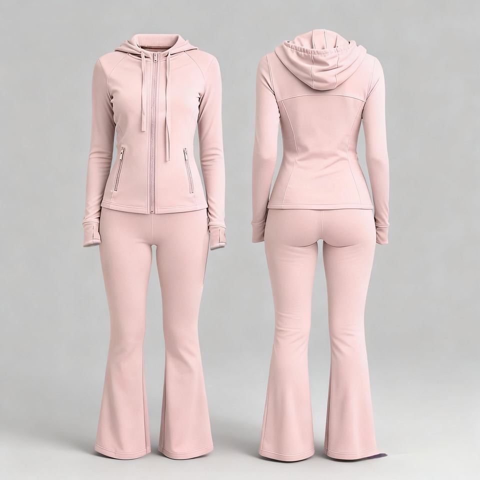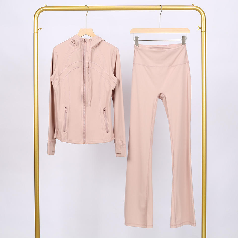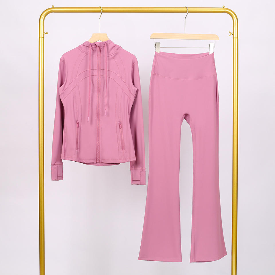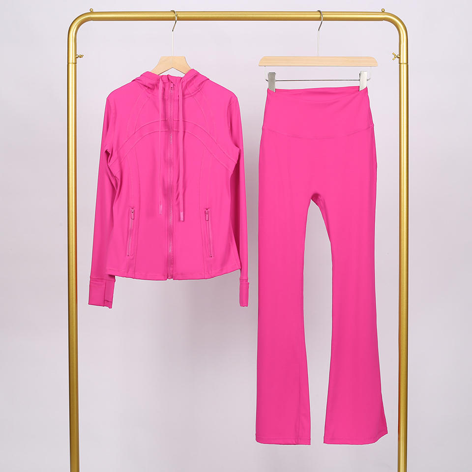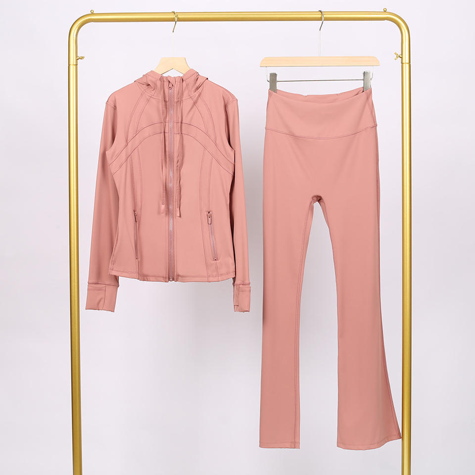 Conjunto Deportivo de Dos Piezas para Mujer, Talla Grande, Color Sólido, Transpirable, de Poliéster/Nailon, con Top de Manga Larga y Cuello Alto