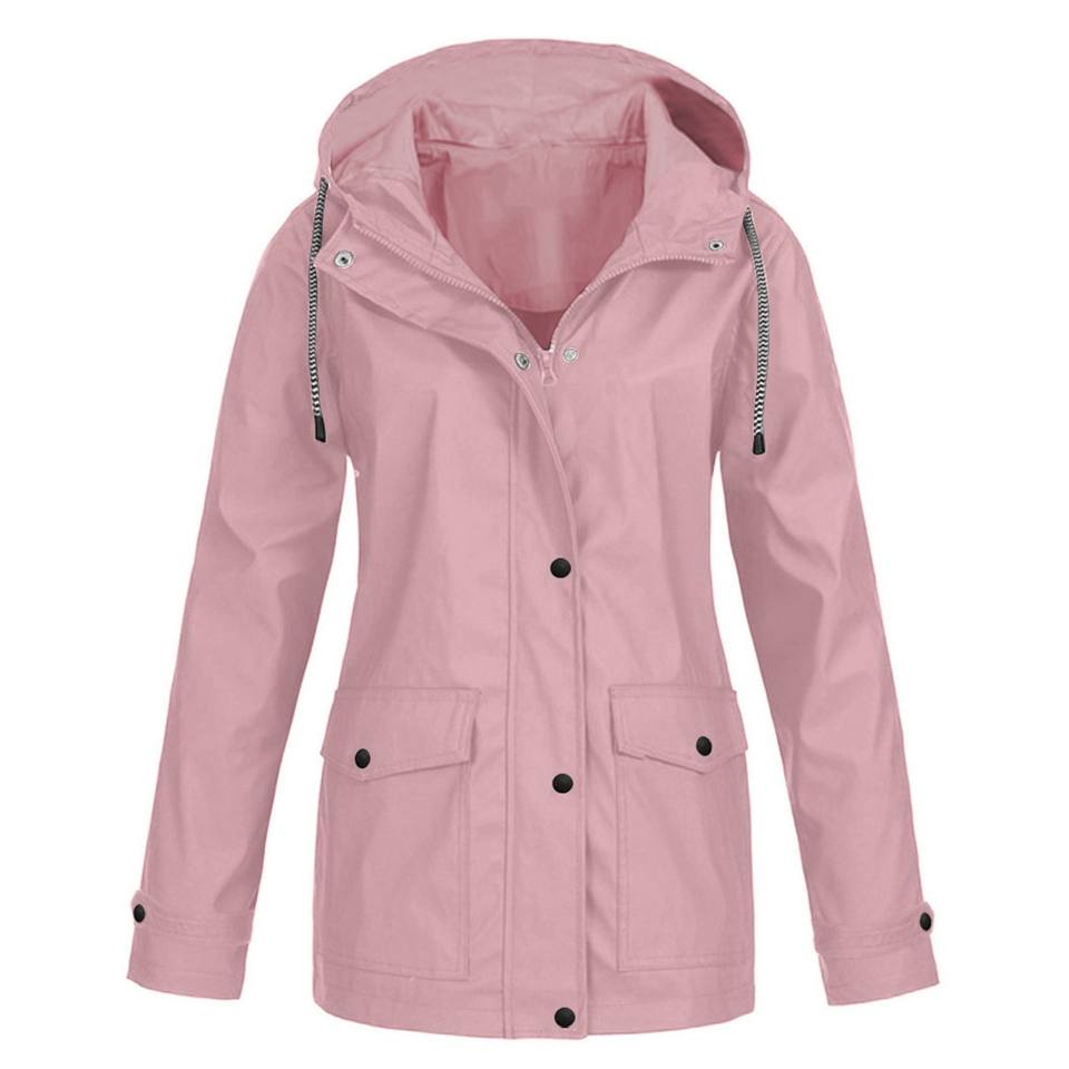 Chaqueta de lluvia con capucha impermeable de talla grande para mujer Estilo Poncho sólido a prueba de viento y cálido para ropa impermeable al aire libre
