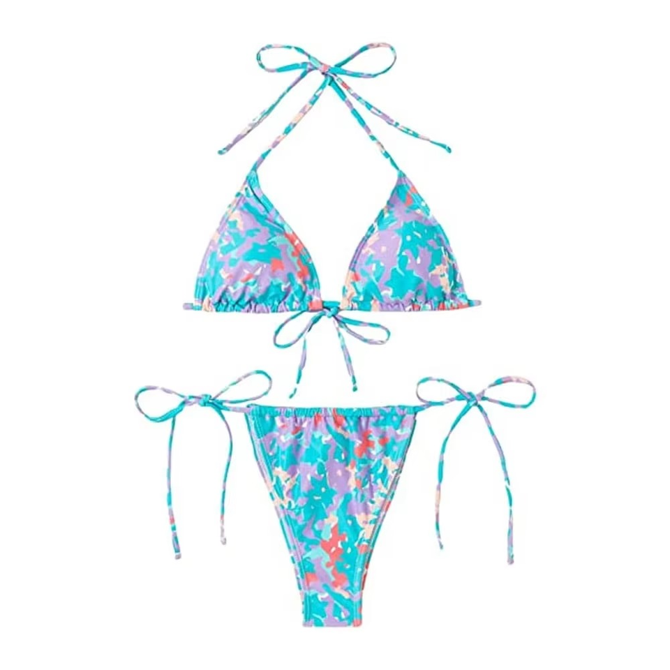 Women’s Printed Bikini Set Triangle Halter Tie Side Two Piece Swimsuit Adjustable String Swimwear for Wholesale