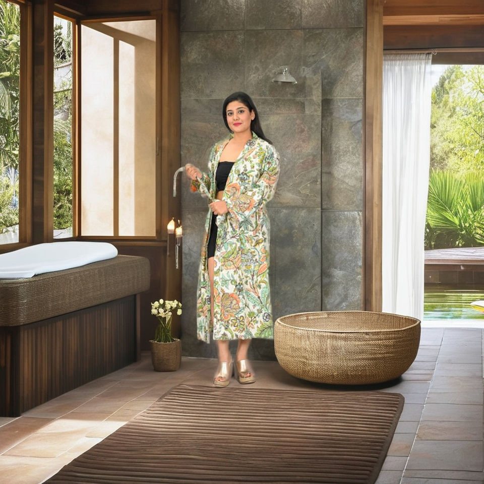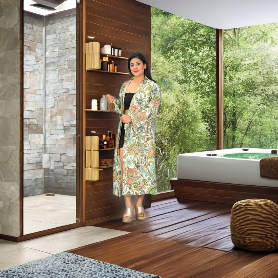 Bata de algodón elegante estampada para mujer, manga media, con lazo frontal, de longitud completa, de secado rápido, estilo kimono romántico, regalo de Navidad