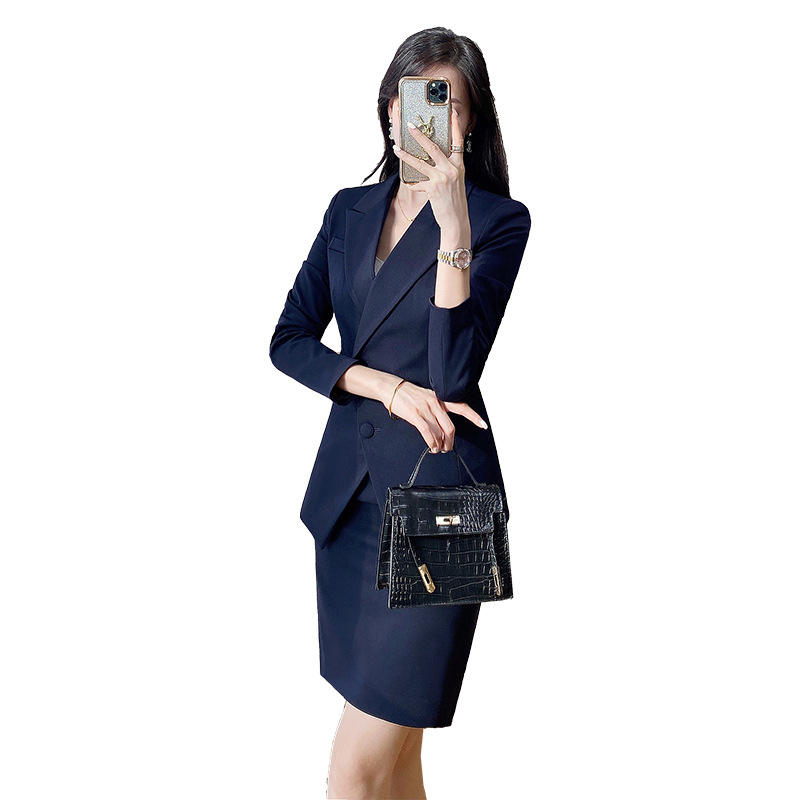 Women's Professional Suit Set Spring 2024 Office Lady Full Sleeve Polyester Anti-Wrinkle Two-Piece Skirt Suit