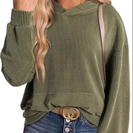 Sudaderas con capucha de mujer Sudaderas Camisas de punto acanaladas de manga larga sueltas informales