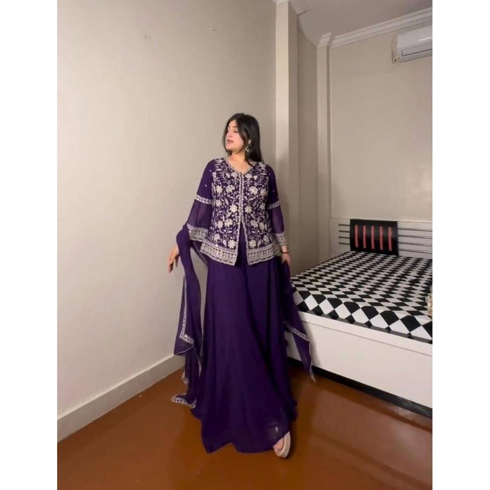 Top púrpura para mujer Palazzo Set Dupatta Atractivo Georgette Secuencia Hilo Trabajo ATRACTIVE GEORGETTE SEQUENCE HILO TRABAJO TOP