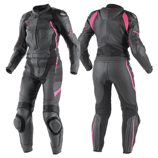 Traje de moto negro de dos piezas de cuero de carreras para mujer, protecciones blindadas certificadas CE, traje de motociclismo para mujer