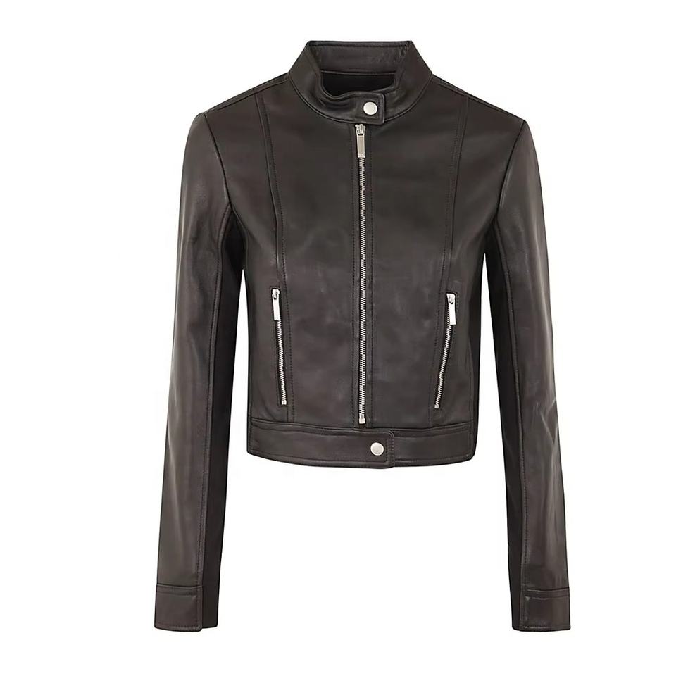 Chaqueta Bomber de cuero real para mujer Chaquetas de cuero de ajuste cómodo de diseño a medida de cuero Premium