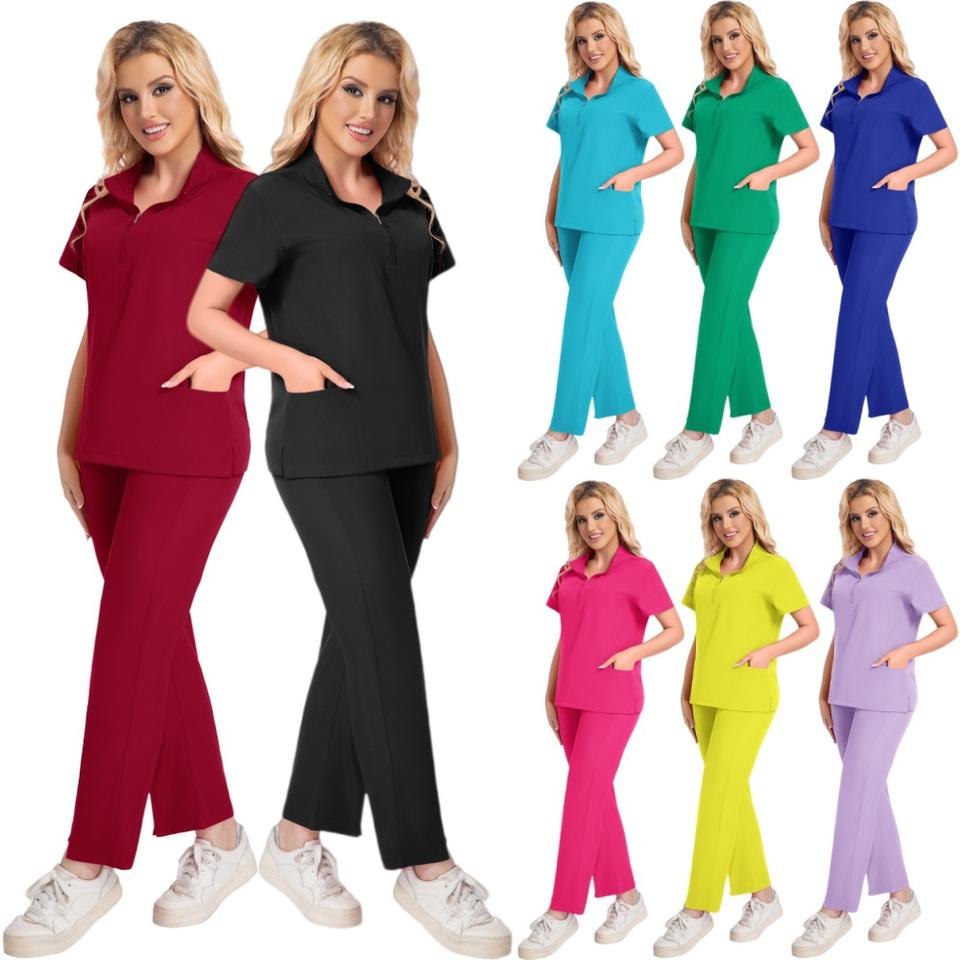 Women's Red Scrub Set With Zipper Top And Straight Leg Pants Moisture Wicking Hospital Uniform Split Set