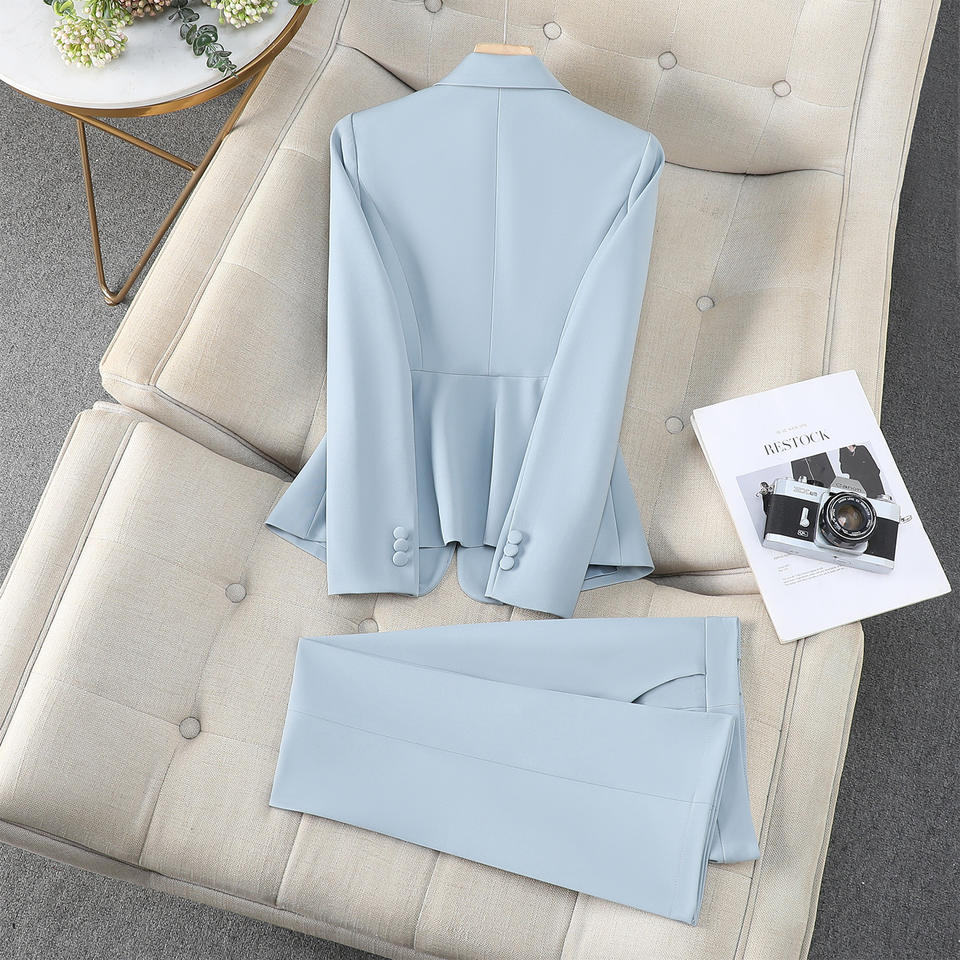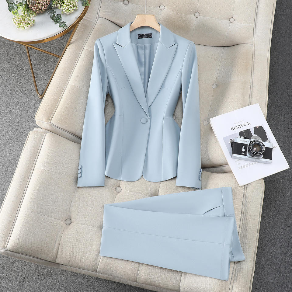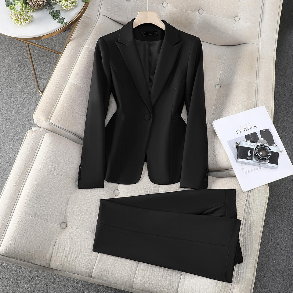 Women's Red Suit Set Polyester Satin Full Sleeve Anti-Wrinkle Office Lady Spring Professional Formal Work Uniform