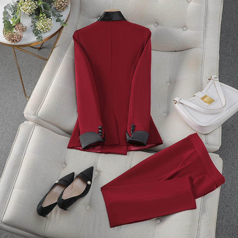 Women's Red Suit Set With Black Trim Professional Formal Wear For Office And Events Size Lx9665