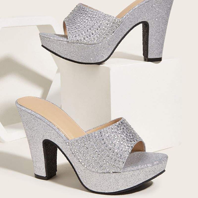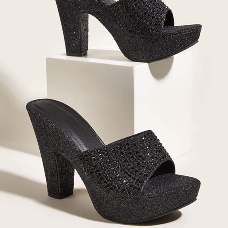 Mules de Plataforma con Tacón de Cuña y Pedrería para Mujer, Sandalias de Tacón Alto con Punta Abierta y Brillo para Fiesta, Boda, Uso Diario