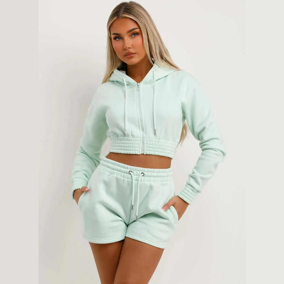 Top corto acanalado para mujer con capucha Y2K, conjunto corto de talla grande, trajes informales de moda transpirables y a prueba de viento