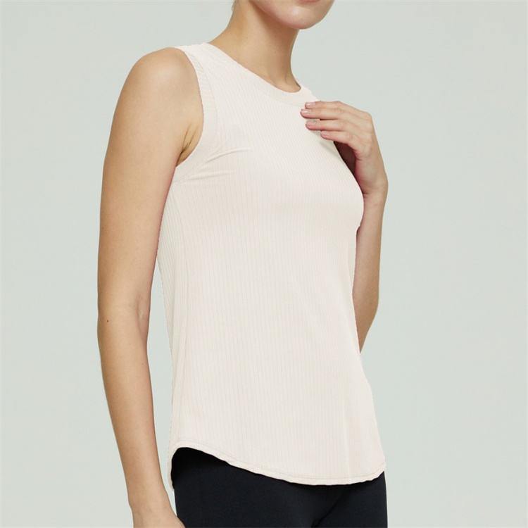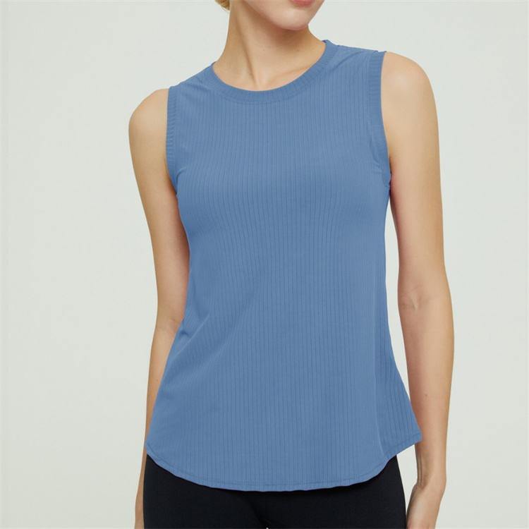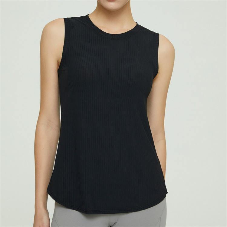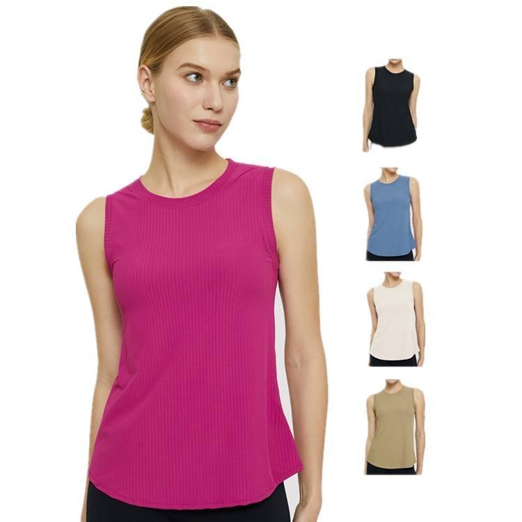 Camiseta sin mangas de punto acanalado para mujer, blusa elástica de poliéster y elastano, ropa deportiva informal para gimnasio, entrenamiento y running