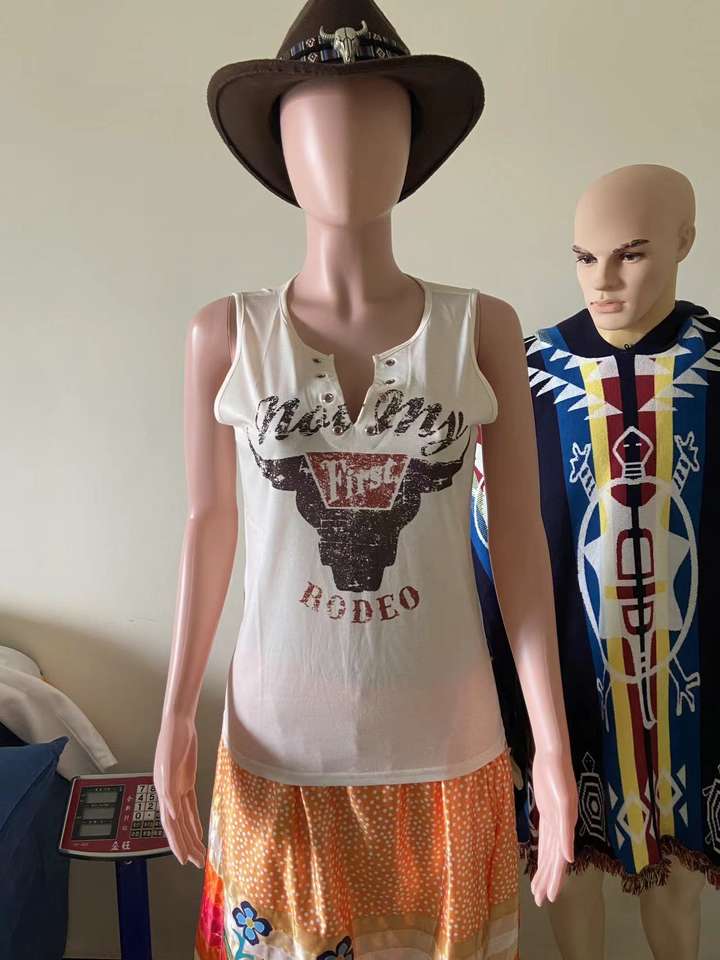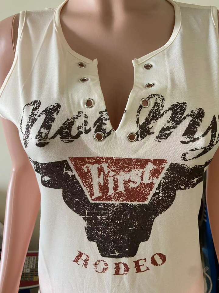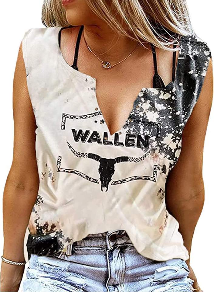 Camiseta sin mangas Henley con estampado de rodeo para mujer - Top casual estilo vaquero con botones y cuello en V para verano y ropa urbana