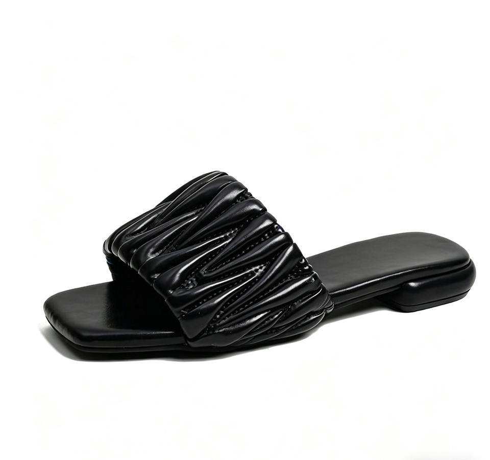 Sandalias Planas con Punta Cuadrada y Diseño Fruncido para Mujer, Pantuflas de Moda, Sandalias de Playa Casuales de Verano con Suela Suave y Cómoda para Damas