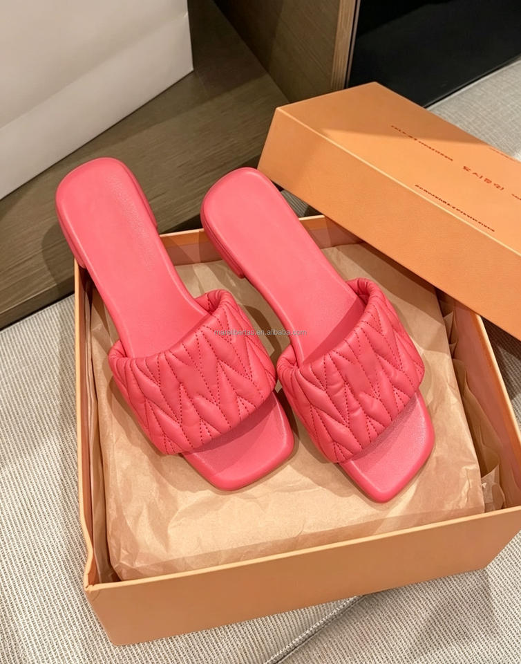Sandalias Planas con Punta Cuadrada y Diseño Fruncido para Mujer, Sandalias Abiertas de Moda, Cómodas y de Suela Suave para Verano, Playa y Exteriores