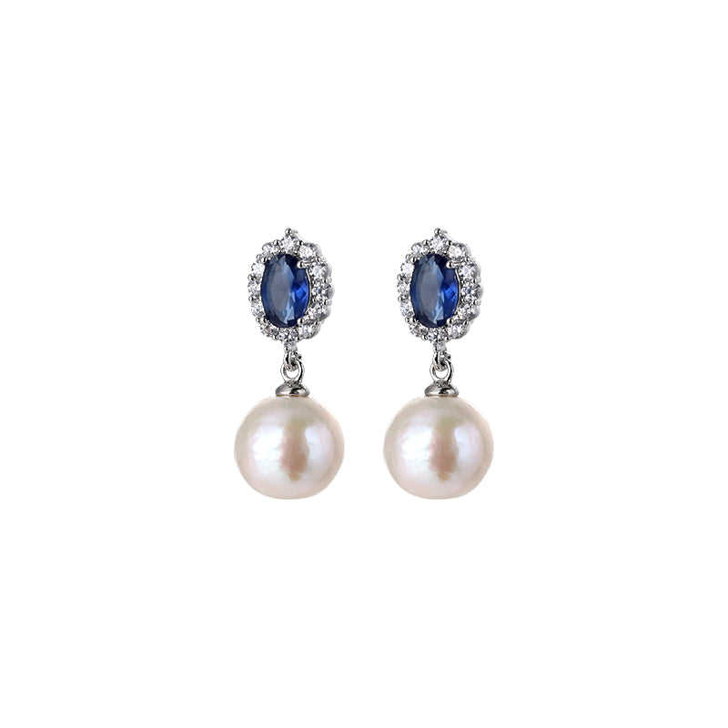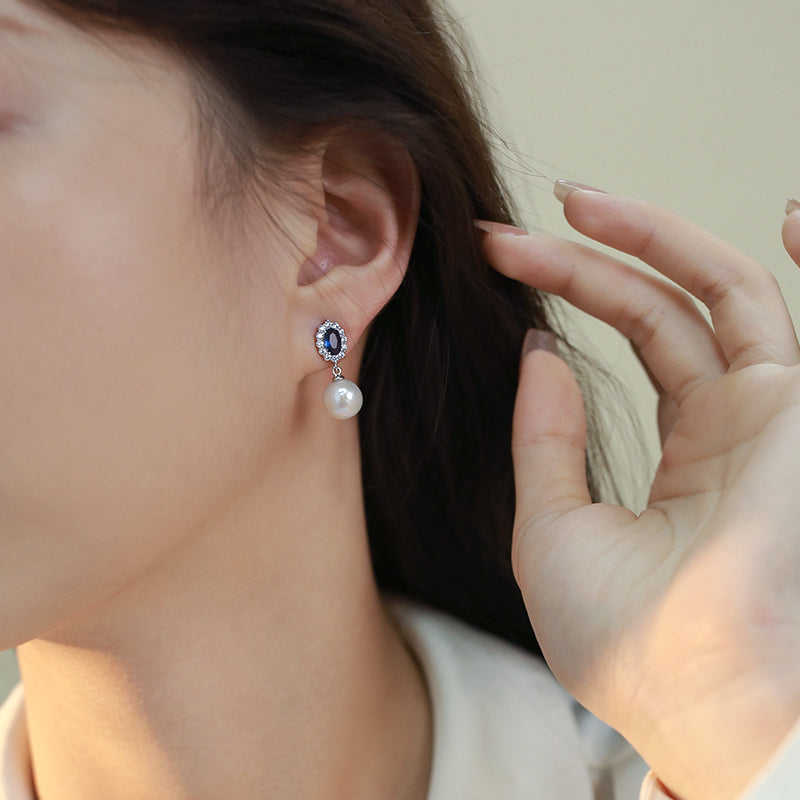 Pendientes de Plata S925 para Mujer con Circonita Azul y Perla Natural, Elegante Accesorio de Joyería