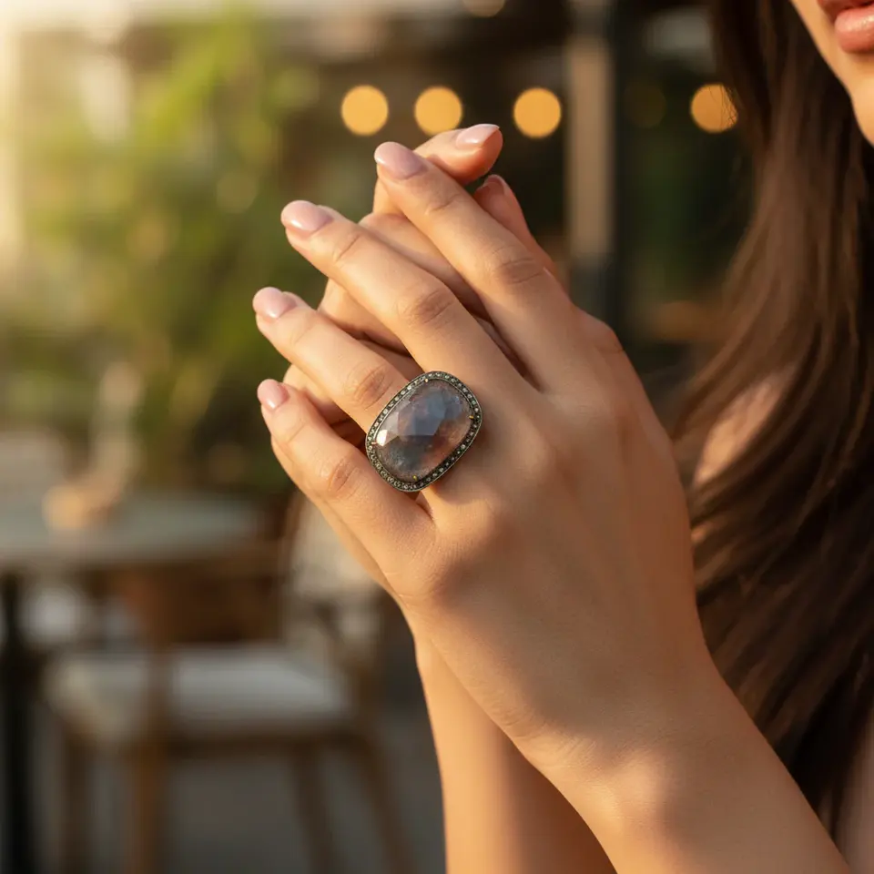 Anillo de Mujer con Zafiro y Diamantes, Gema de Corte Ovalado, Joyería Fina de Platino, Chapado en Rodio