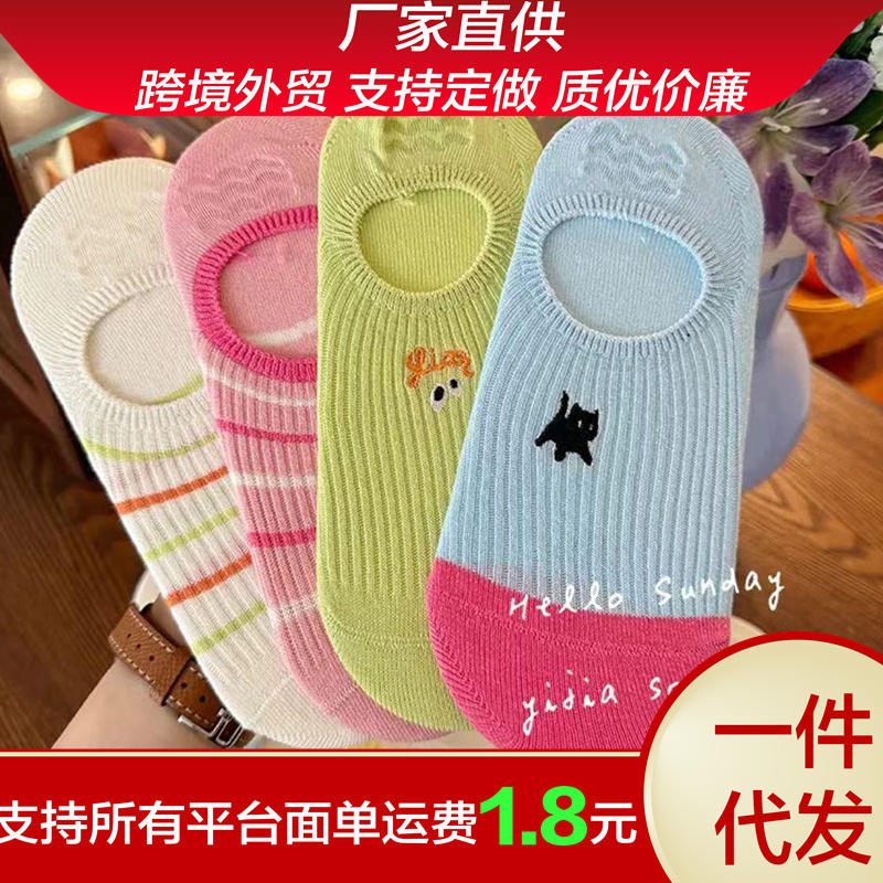 Calcetines invisibles sin costuras para mujer, finos, de corte bajo, antideslizantes, con bloques de color y estampado animal, estilo veraniego