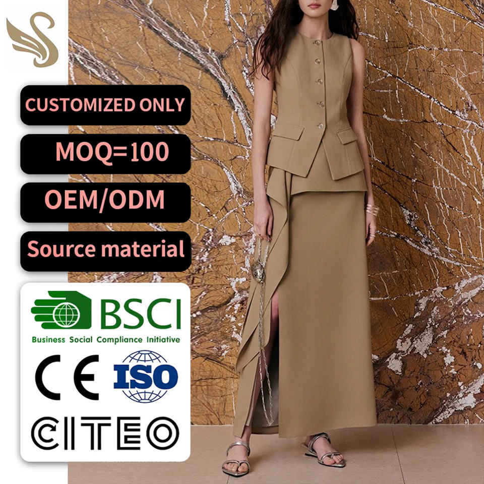 Conjunto para Mujer: Chaleco con Cuello Redondo y Botones con Falda Maxi Asimétrica - Colección de Diseñador ODM