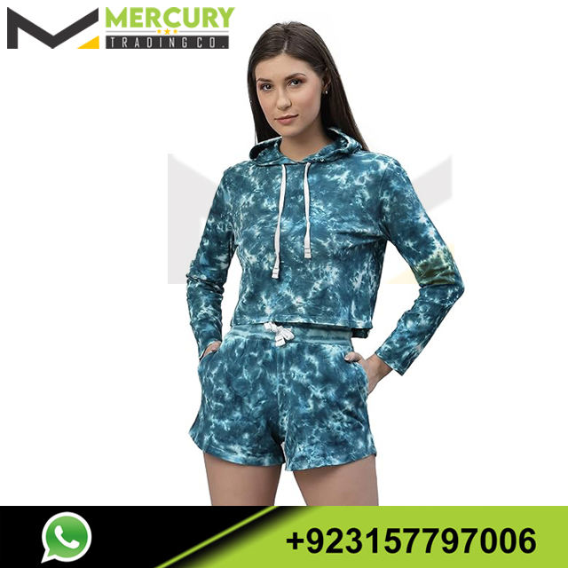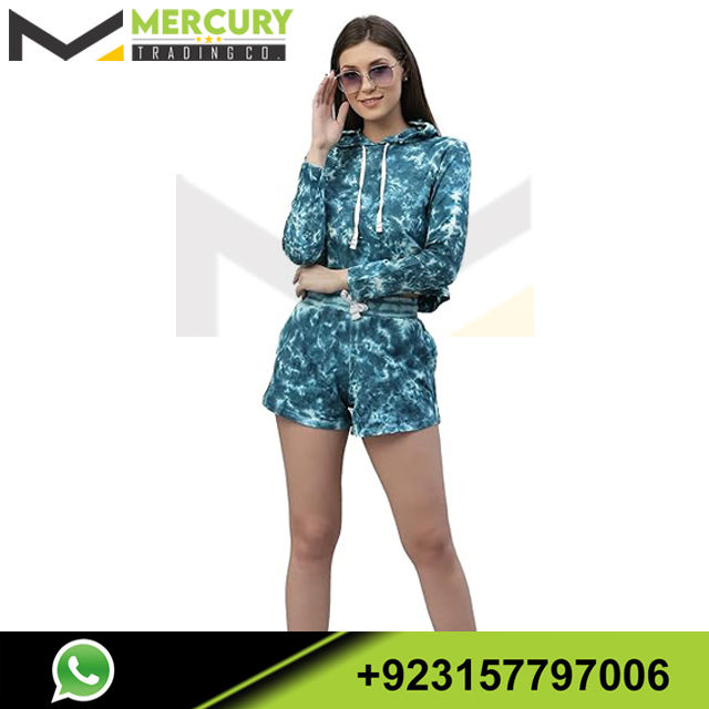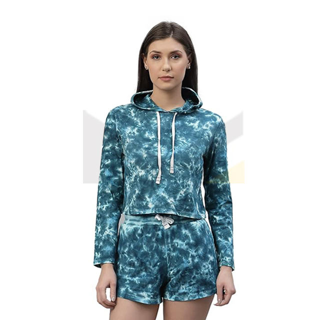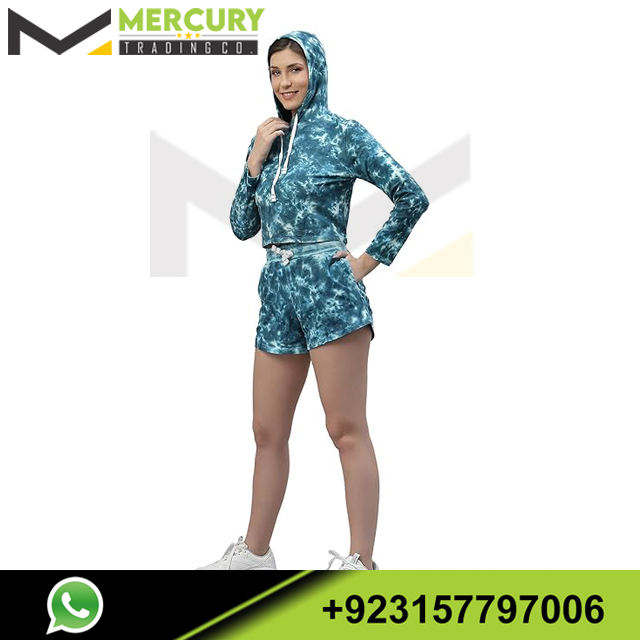 Conjunto de mujer de dos piezas con logotipo personalizado Sudadera con capucha Conjunto corto Mujer con capucha Crop Top Sudadera con capucha Impreso y pantalones cortos estampados
