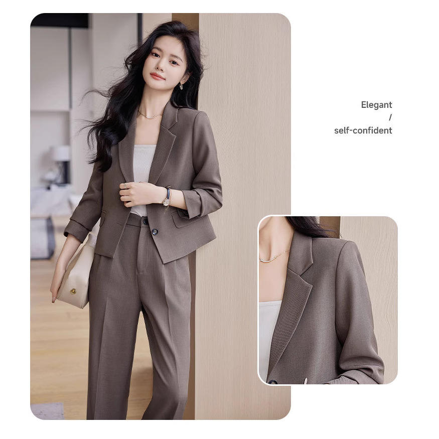 Women's Short Blazer Set Polyester Three Quarter Sleeve Anti-Wrinkle Business Suit Spring Professional Wear