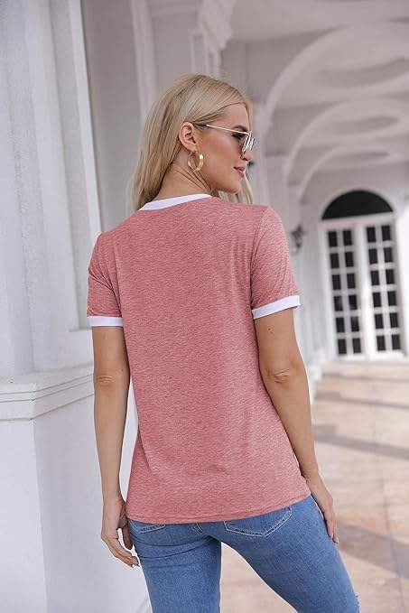 Camiseta de manga corta ecológica con cuello redondo para mujer, camisetas básicas de bloque de color para verano