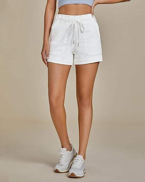 Shorts de Lona Rectos de Cintura Baja Transpirables para Mujer con Volantes, Cintura Elástica y Cierre de Cremallera