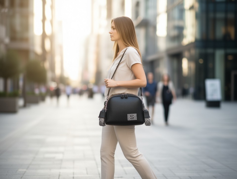 Bolso de hombro para mujer de 7 pulgadas, microfibra, cuero sintético, resistente al agua, decoración con letras, uso diario