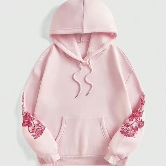 Sudadera con capucha con estampado gráfico para mujer con bolsillo de canguro Sudadera térmica de algodón 100% Temporada de invierno Lema Estampado gráfico Logotipo frontal