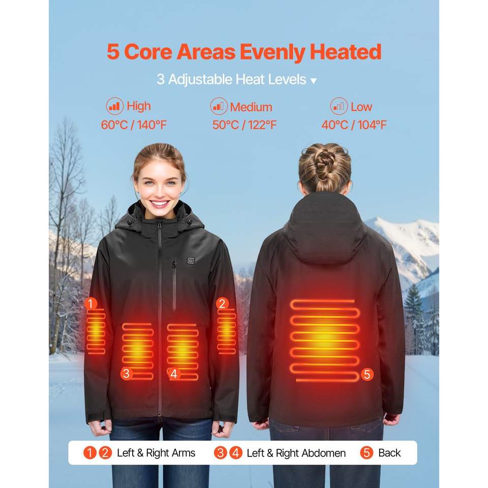 Chaqueta Térmica de Mujer con Calefacción Eléctrica, Batería de 7.4V, Resistente al Viento e Impermeable, Ligera, para Actividades al Aire Libre y Senderismo
