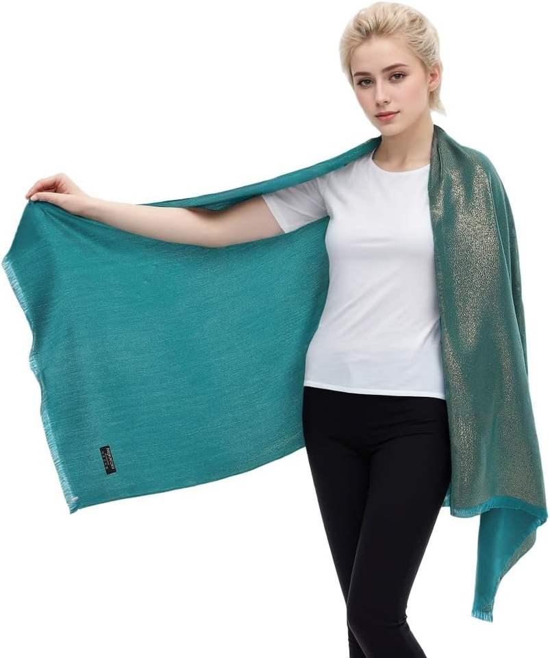 Chal Largo de Color Sólido para Mujer, al por Mayor, Suave, Metálico, Brillante, Transpirable, Ligero, Estilo Pashmina, para Eventos Nocturnos, Casual, Tradicional