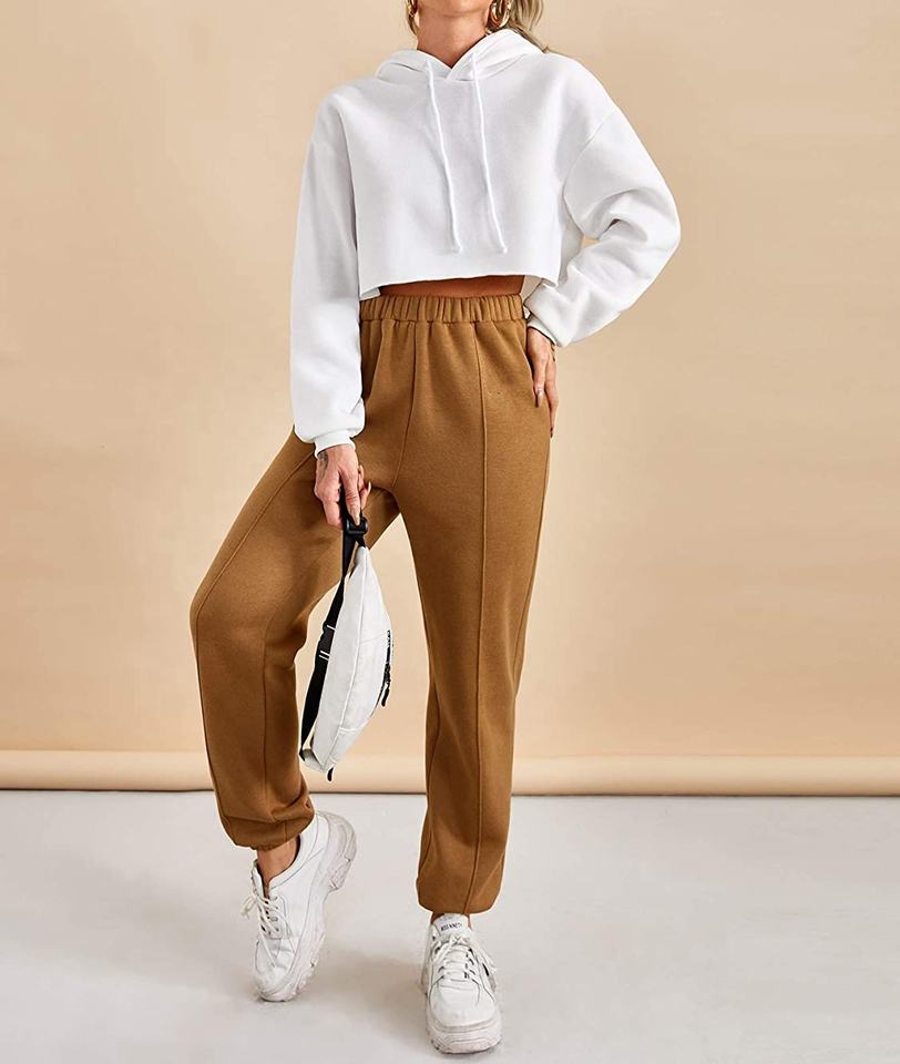 Top con capucha de manga larga de color sólido para mujer con cordón, Sudadera corta de verano