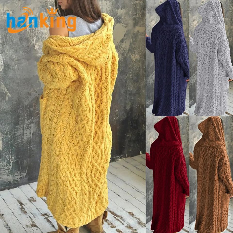 Cárdigan con capucha de manga larga de Color sólido para mujer, sudaderas con capucha de punto informales para mujer, suéteres sueltos de gran tamaño, abrigo J0041