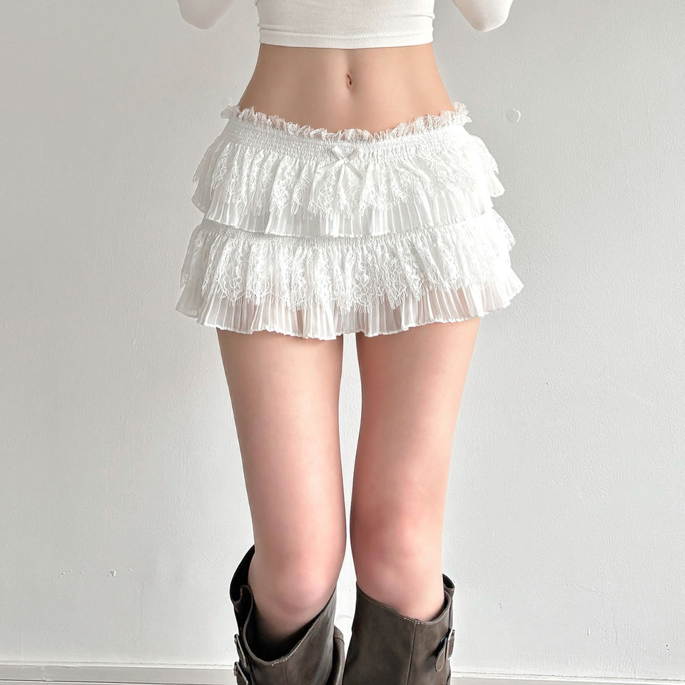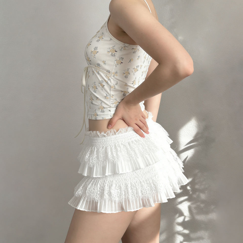 Minifalda de Verano para Mujer, Transpirable, Ecológica, Casual, de Color Sólido, Sexy, con Encaje, en Capas, con Pantalones Cortos Integrados